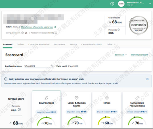 Ecovadis的评级系统不仅关注企业自身,还延伸到其供应链上的合作伙伴。这有助于企业识别并优化供应链中的潜在风险,提升整个供应链的可持续发展水平。