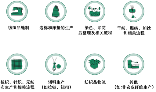 所有纺织公司都可以获得认证,例如纤维制造商、纺纱厂、织布厂、刺绣厂、针织品公司、后整理公司、成衣制造商、泡绵和床垫制造商以及技术物流中心。在皮革行业中,所有工艺,从浸灰、制革到成衣制造,都可以获得认证。